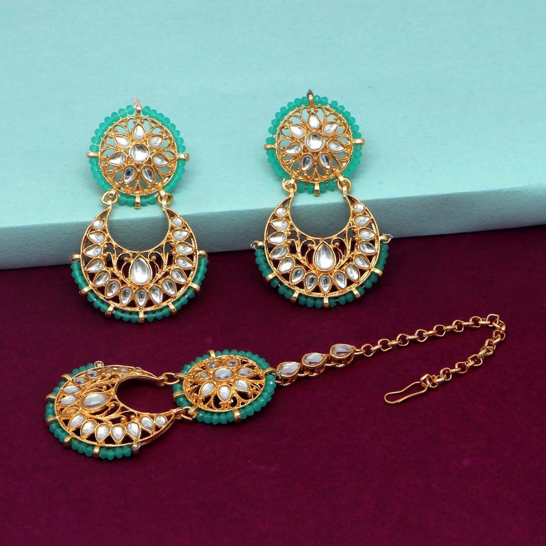 Be the first to review “Green Color Kundan Earrings With Maang Tikka”
