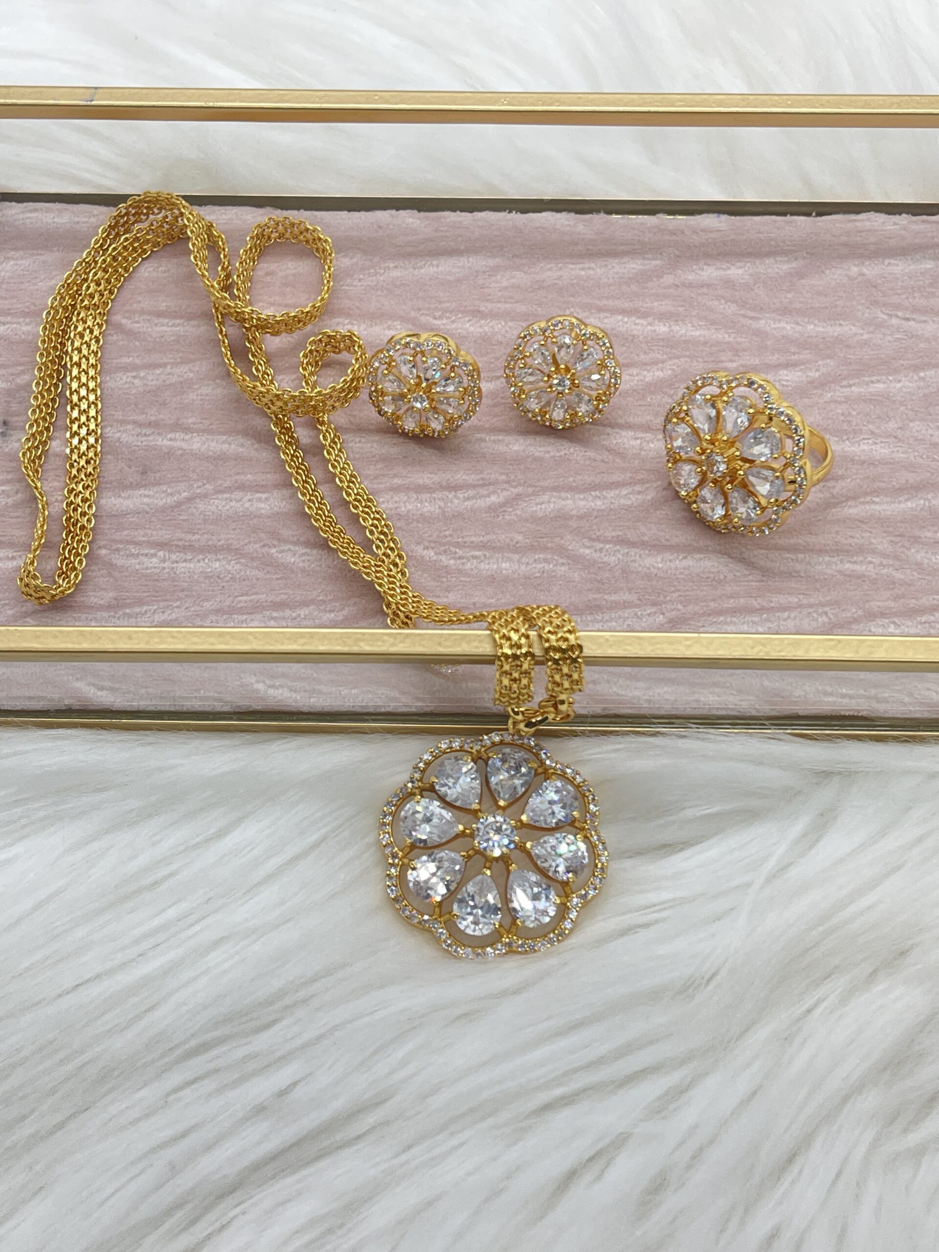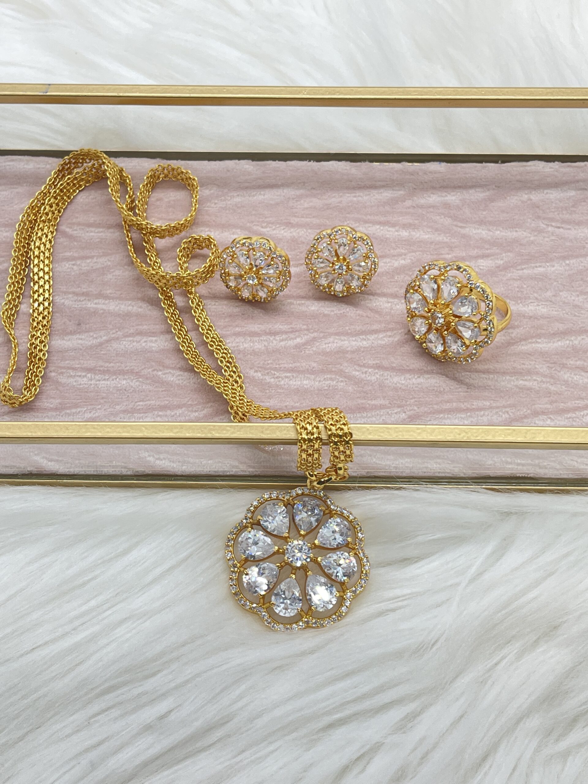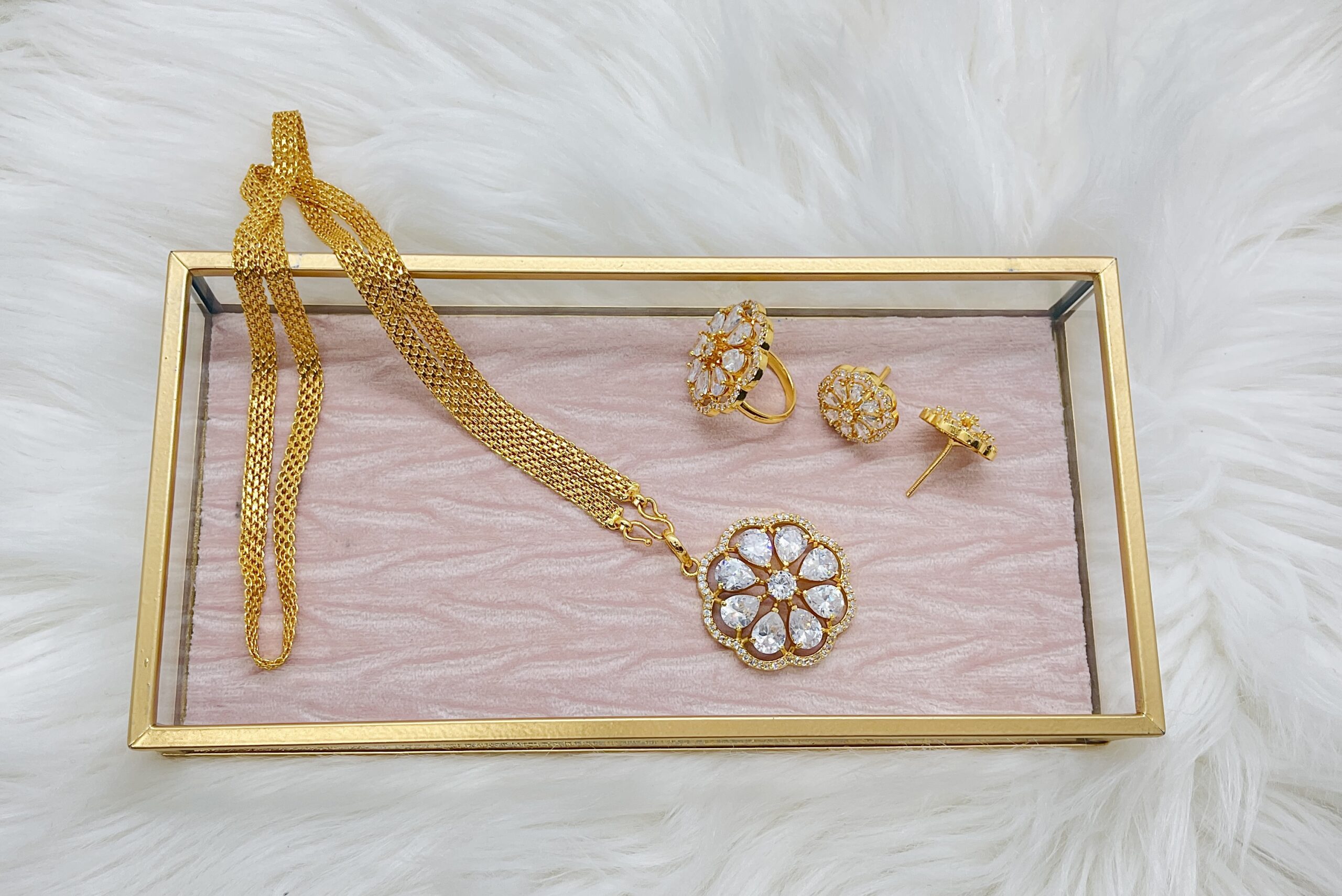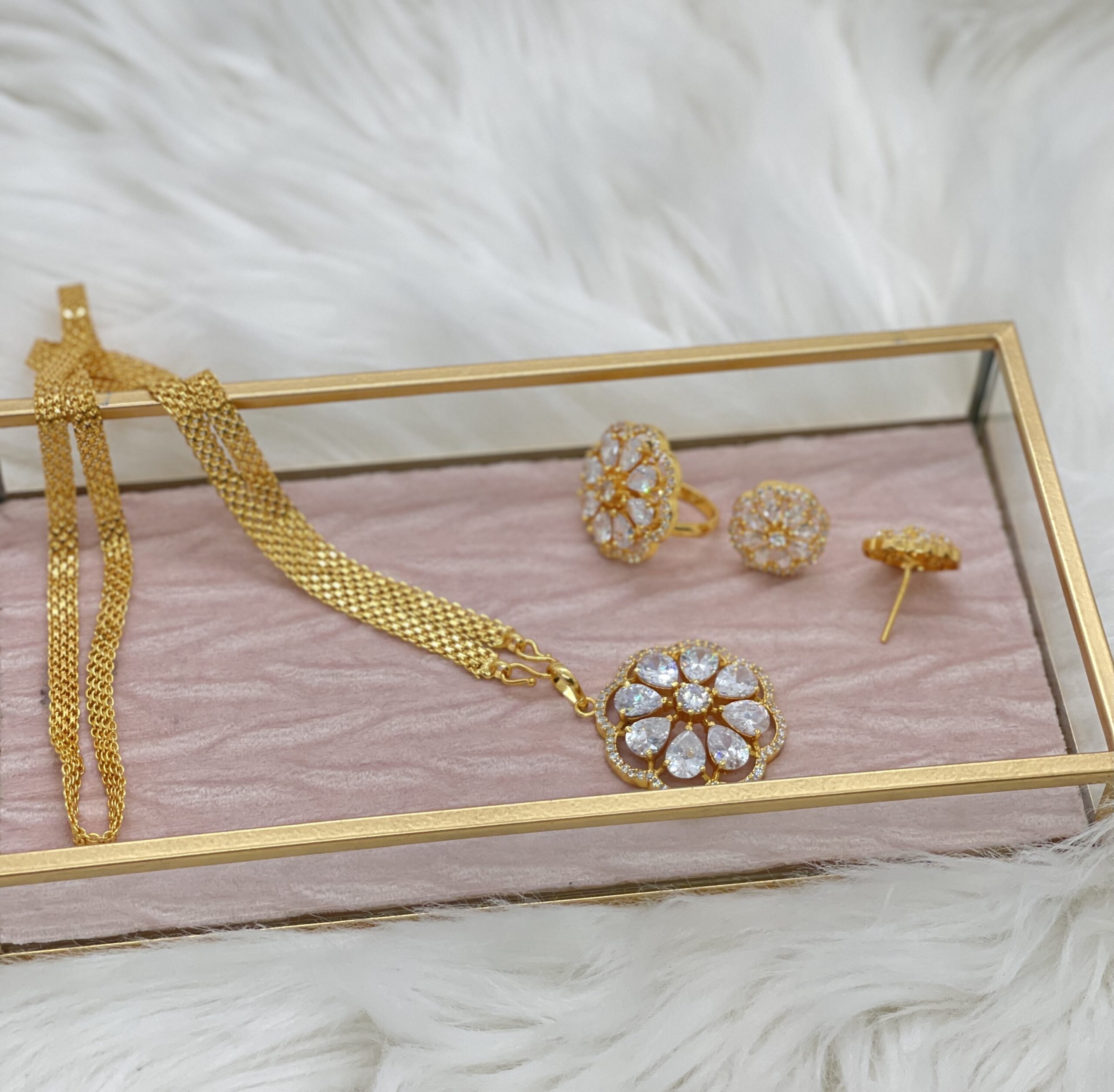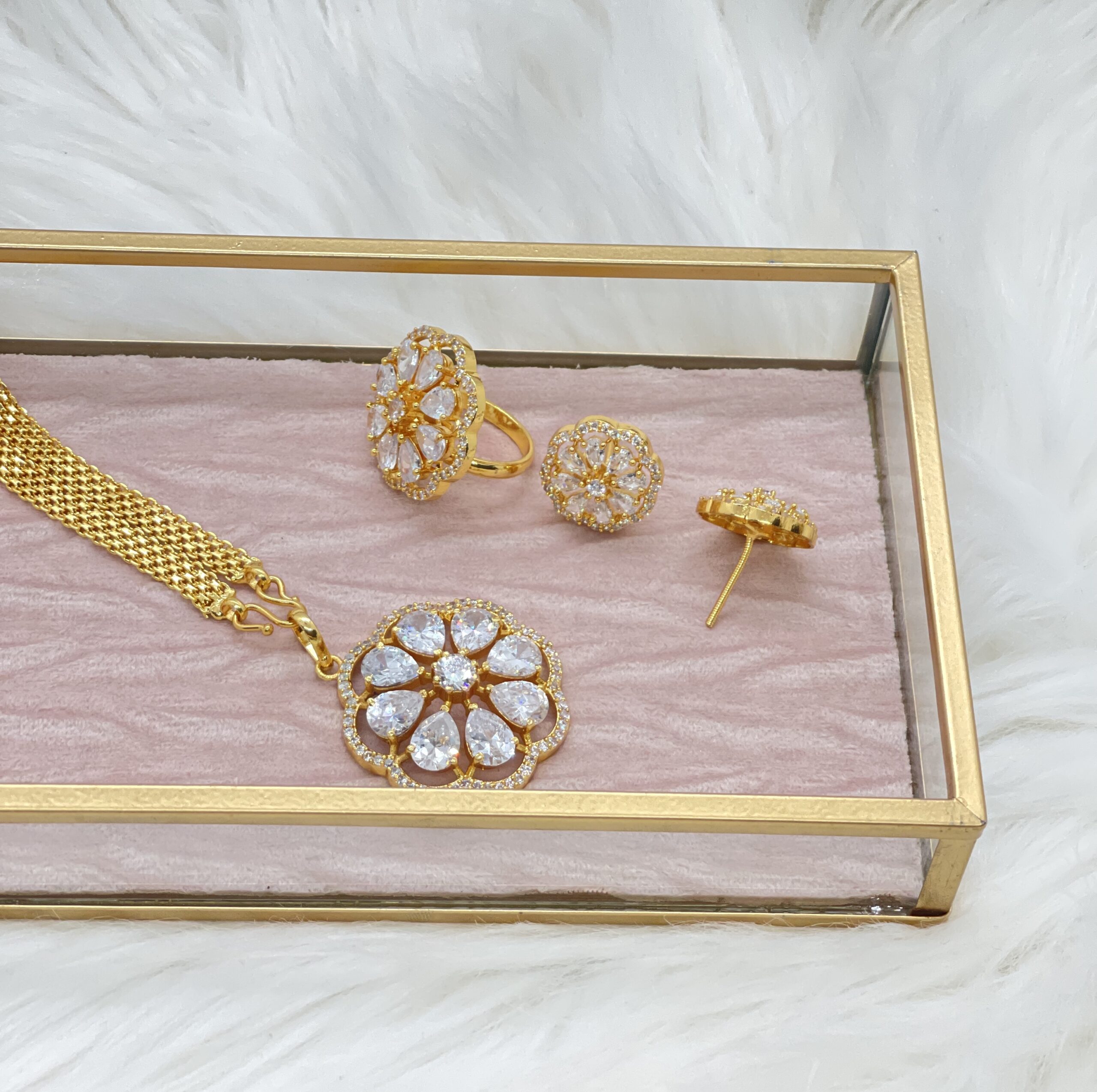 This set is an absolute muse. It is made with premium grade American Diamond (CZ). It is as beautiful as Daisy, thus the name.