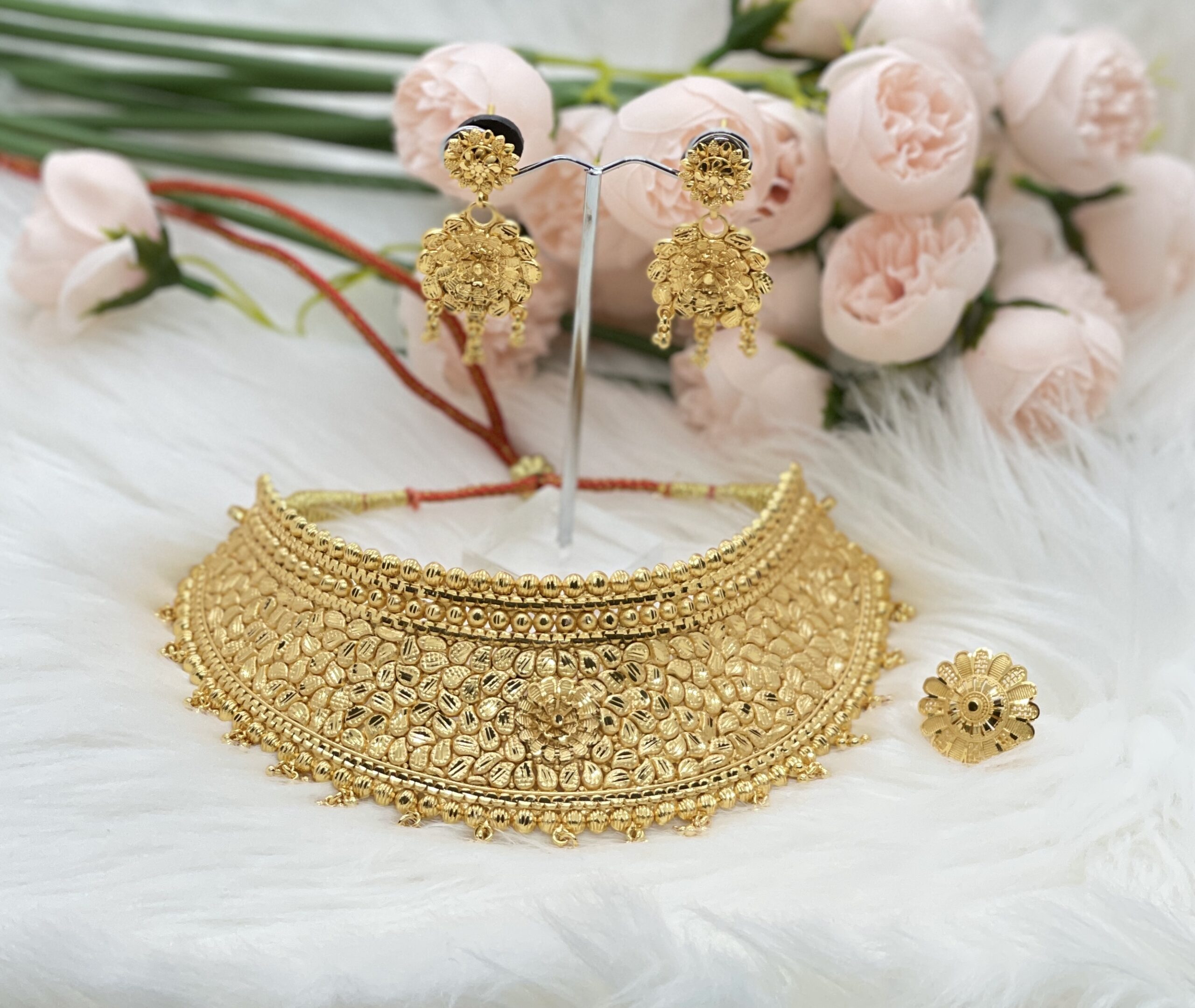 Gunaja is a Golden Choker made with Panchadhatu. I probably don’t need to stress how much chokers are in today’s fashion world. It goes great with any traditional or non-traditional wears. Gold is always in fashion.
