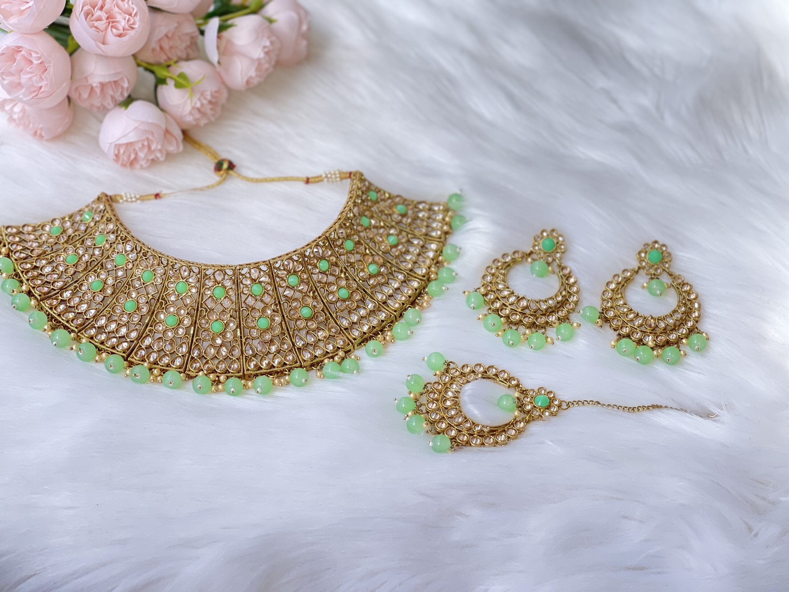 - Package Contains – 1 Pair of earrings, 1 Pc of Bindi/Tikka, 1 Pc of Necklace.