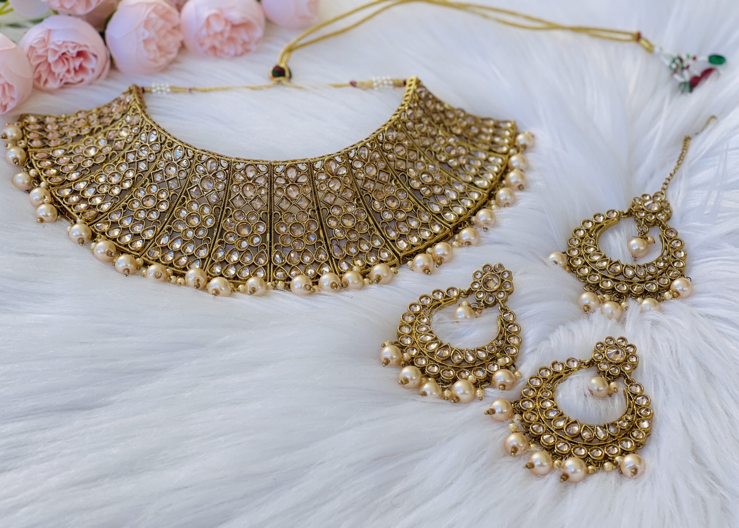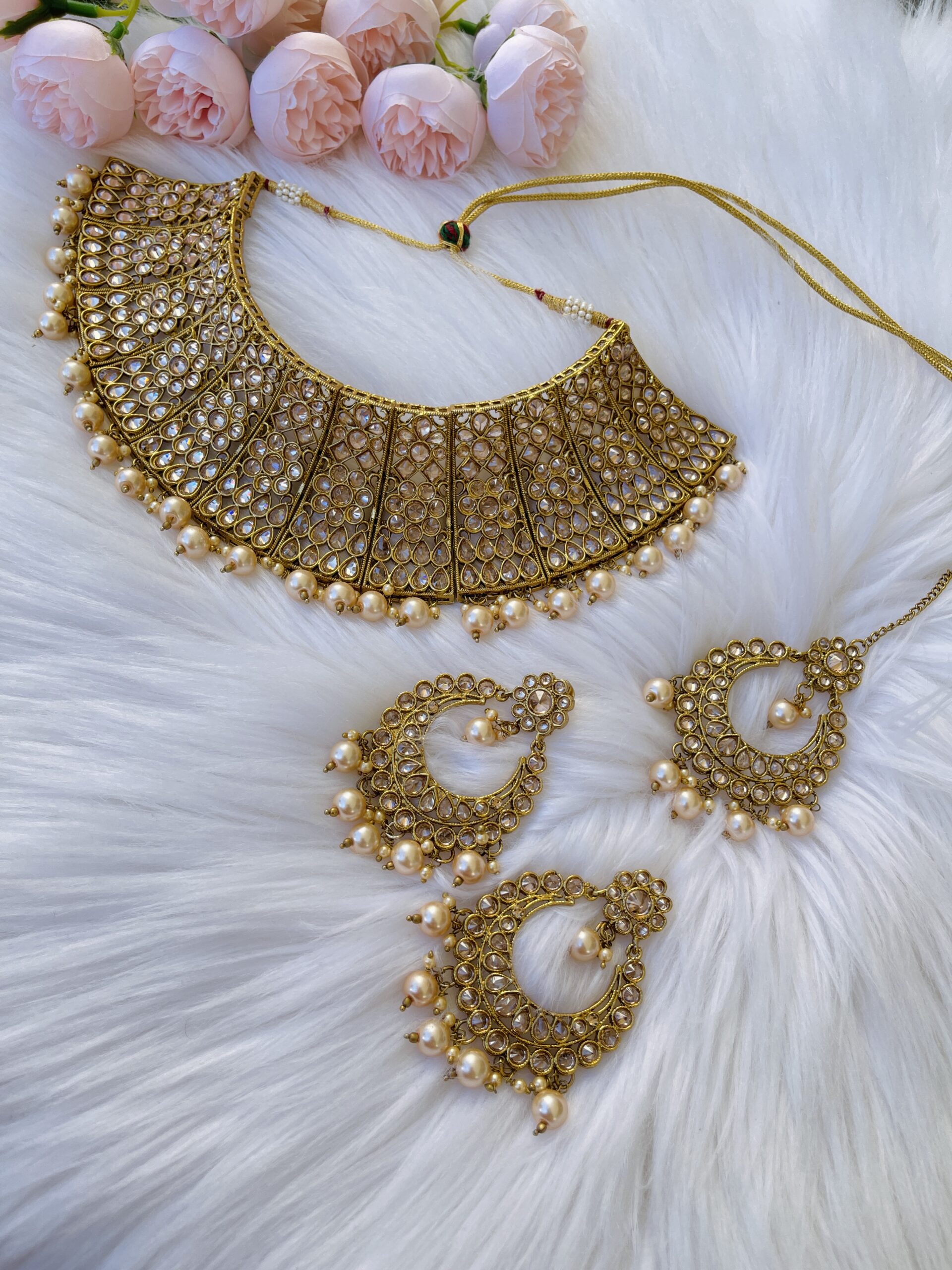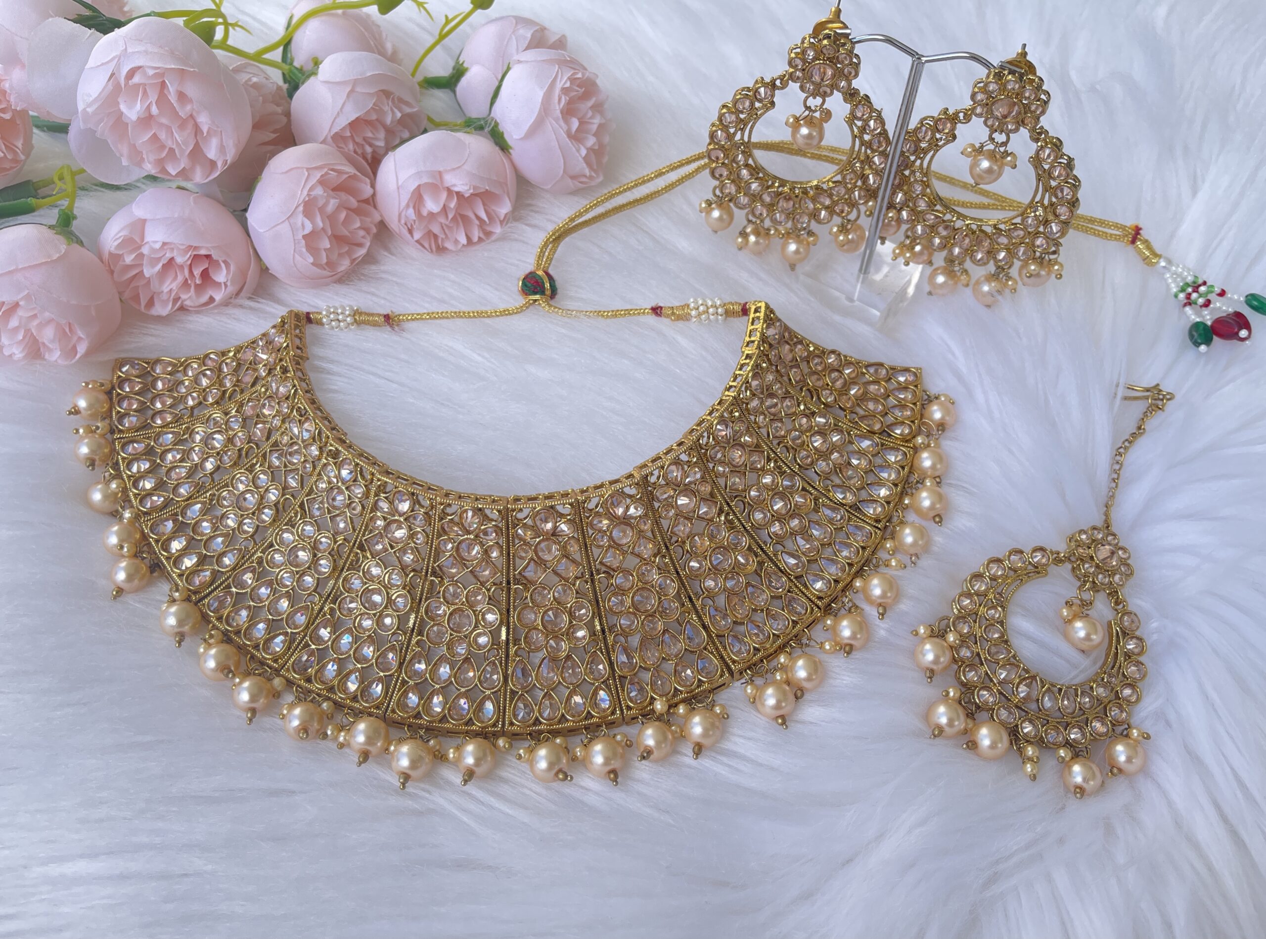 - Package Contains – 1 Pair of earrings, 1 Pc of Bindi/Tikka, 1 Pc of Necklace.