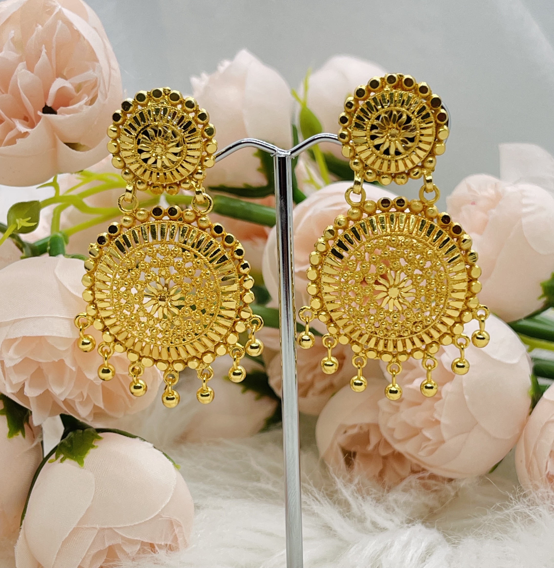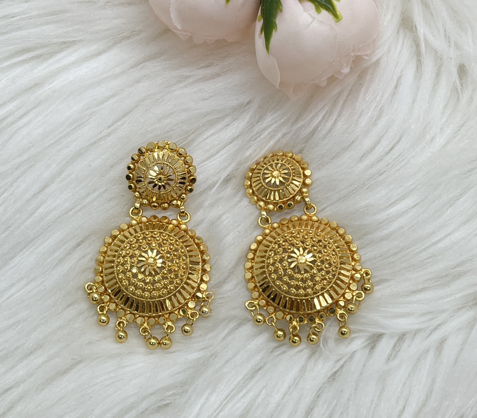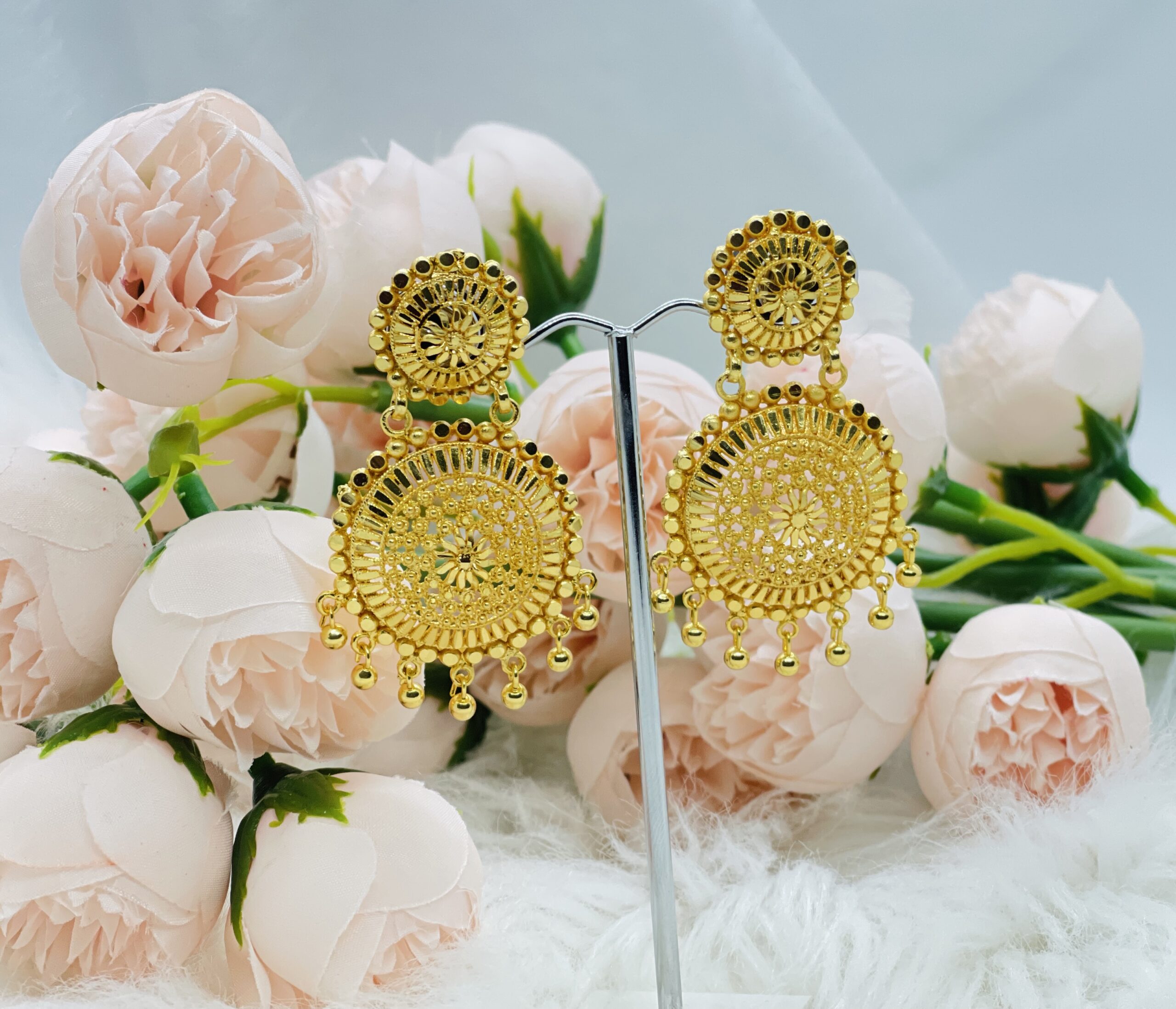 An Earring with exquisite design made with Panchadhatu in order to make the beauty last years. Sleek design that can be worn alone or can be paired with other jewelries. Ideal if paired with traditional Necklaces.