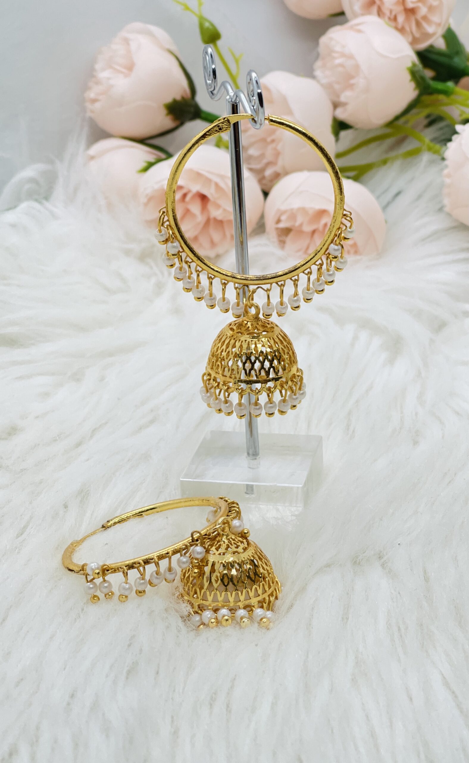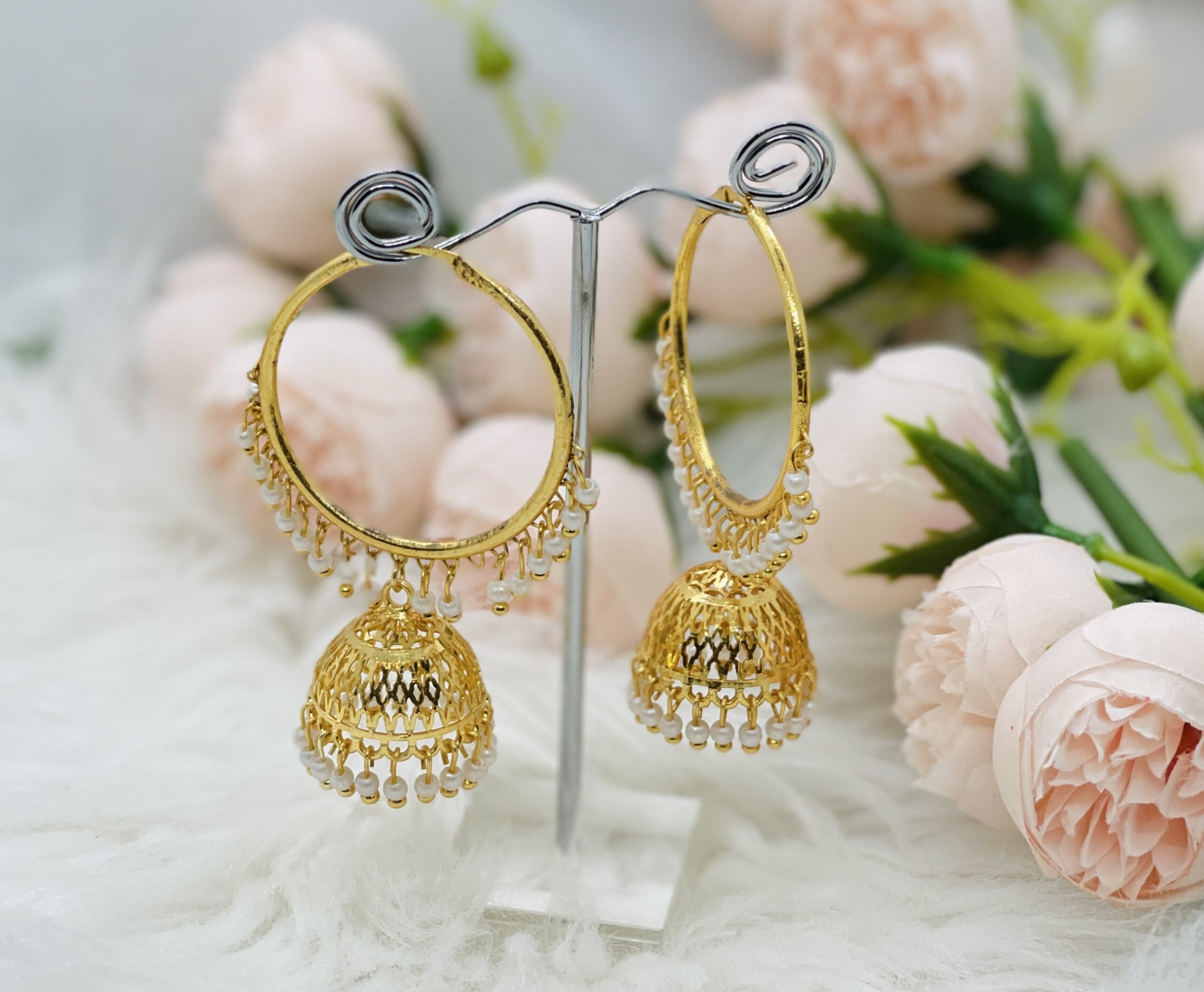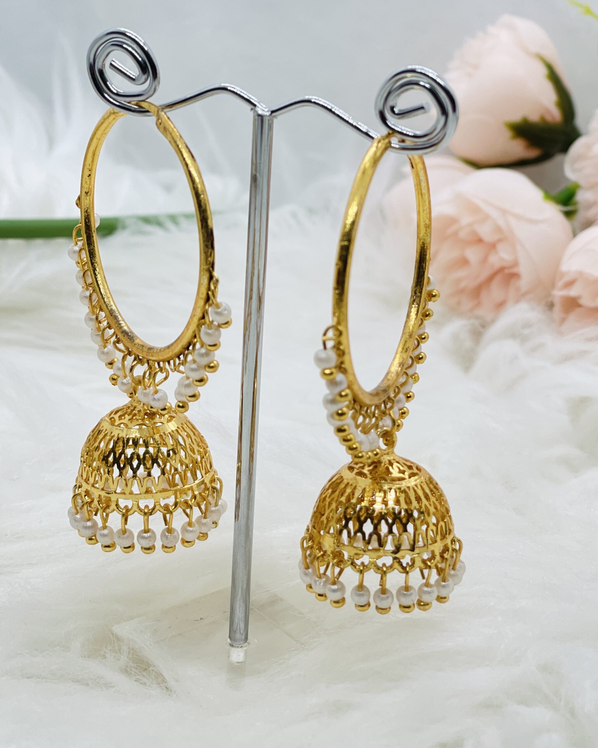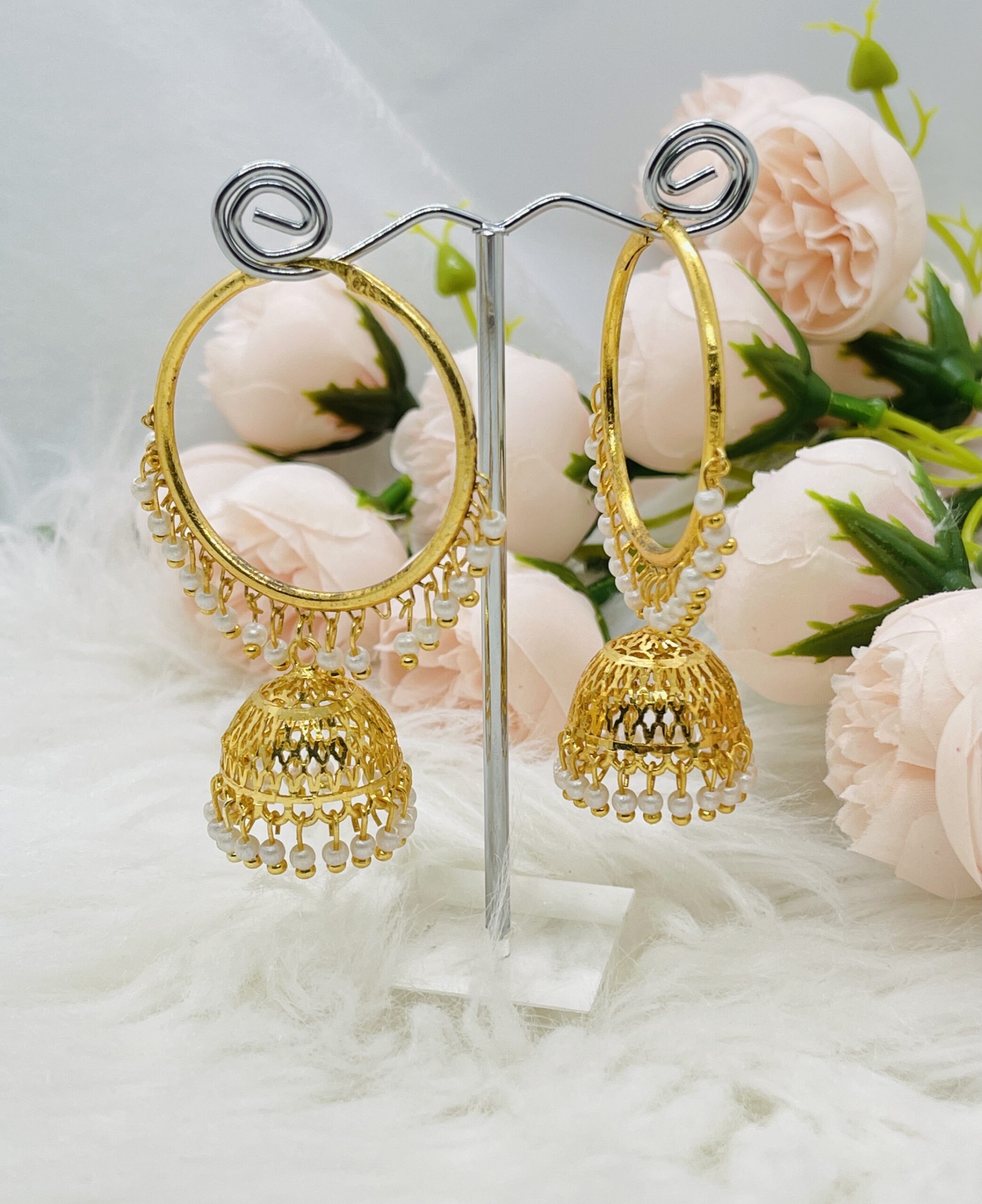 An Earring with exquisite design made with Panchadhatu in order to make the beauty last years. Sleek design that can be worn alone or can be paired with other jewelries. Ideal if paired with traditional Necklaces.