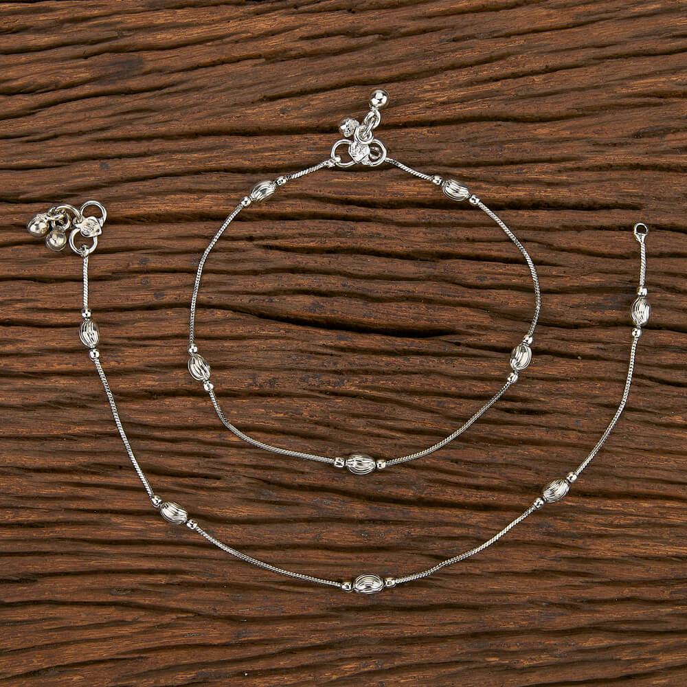 Silver Color Metallic Beads Traditional Look Anklet Set Of 1 Pair