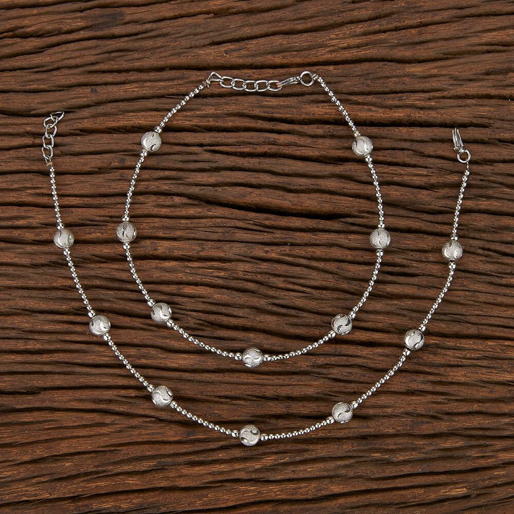 Silver Color Metallic Beads Traditional Look Anklet Set Of 1 Pair