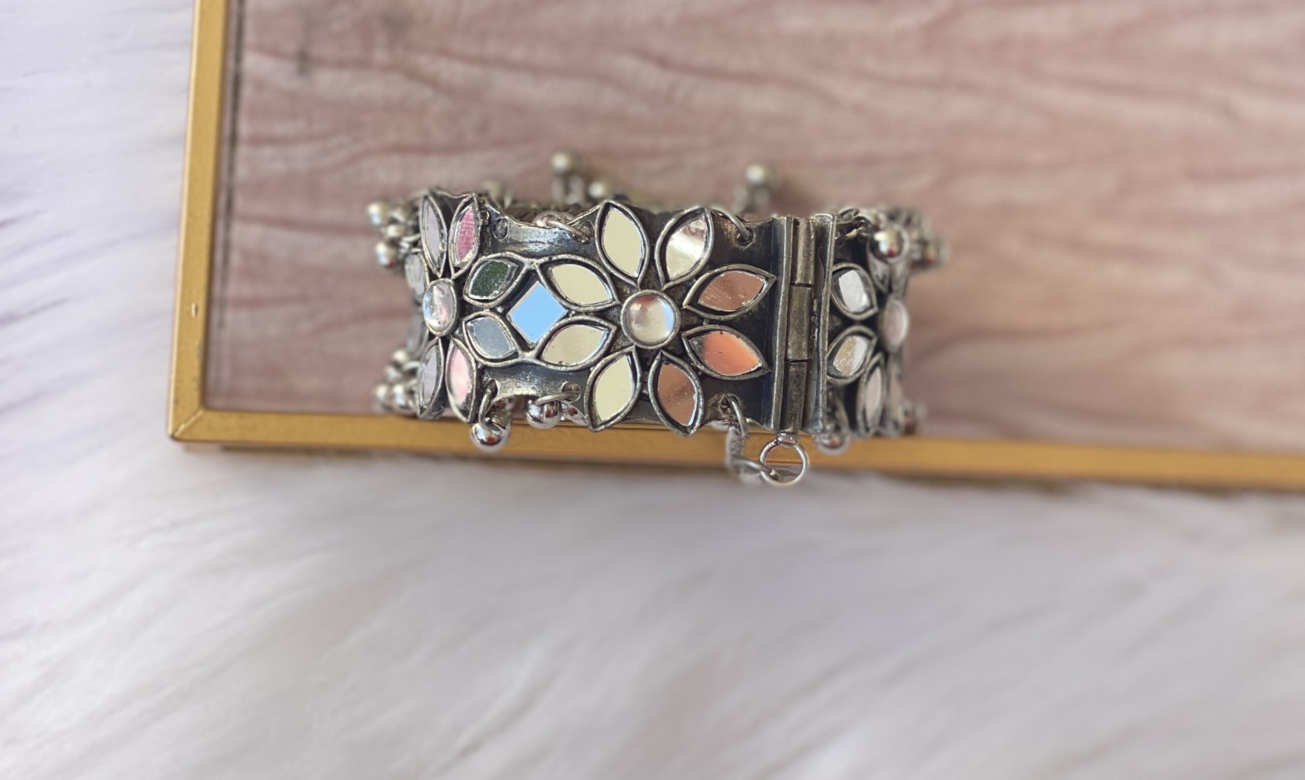 Indian Traditional Ethnic Openable Kadas-Mirror Jewelry. A beautiful bracelet made with real mirror pieces. Can be worn everyday.
