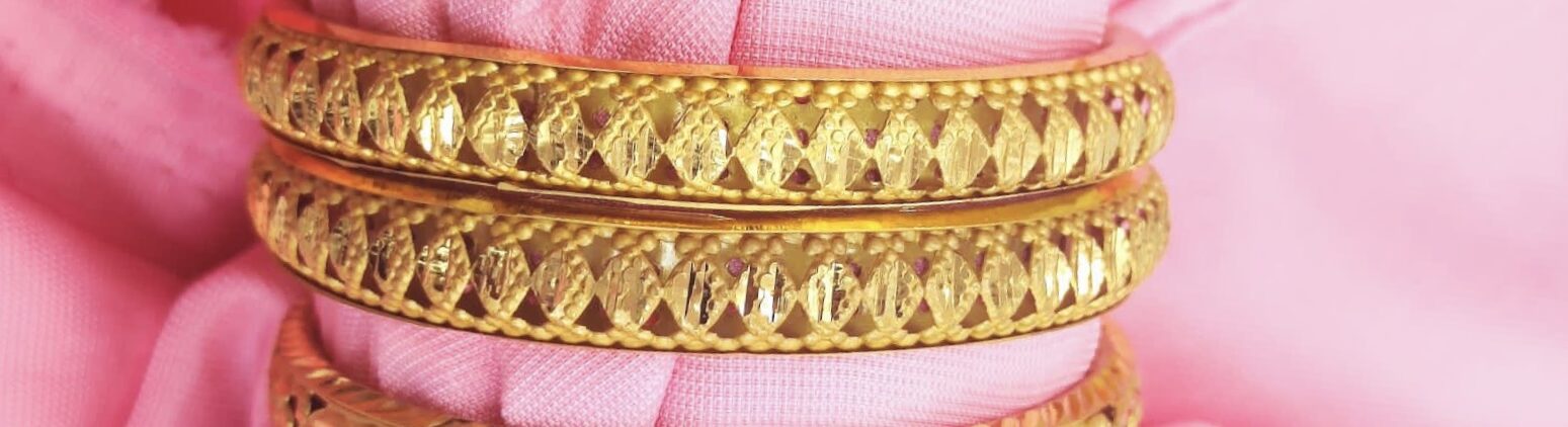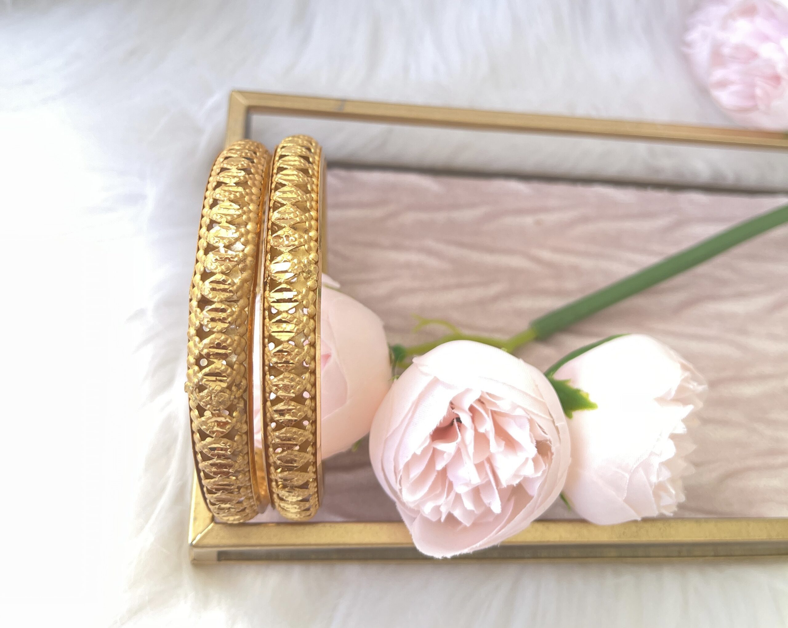 Rajashi is a set of two bangles made with antique matte gold finish look in Diamond Pattern.  It is so beautiful and also the best part is you can wear with all your outfits; be it traditional or not!