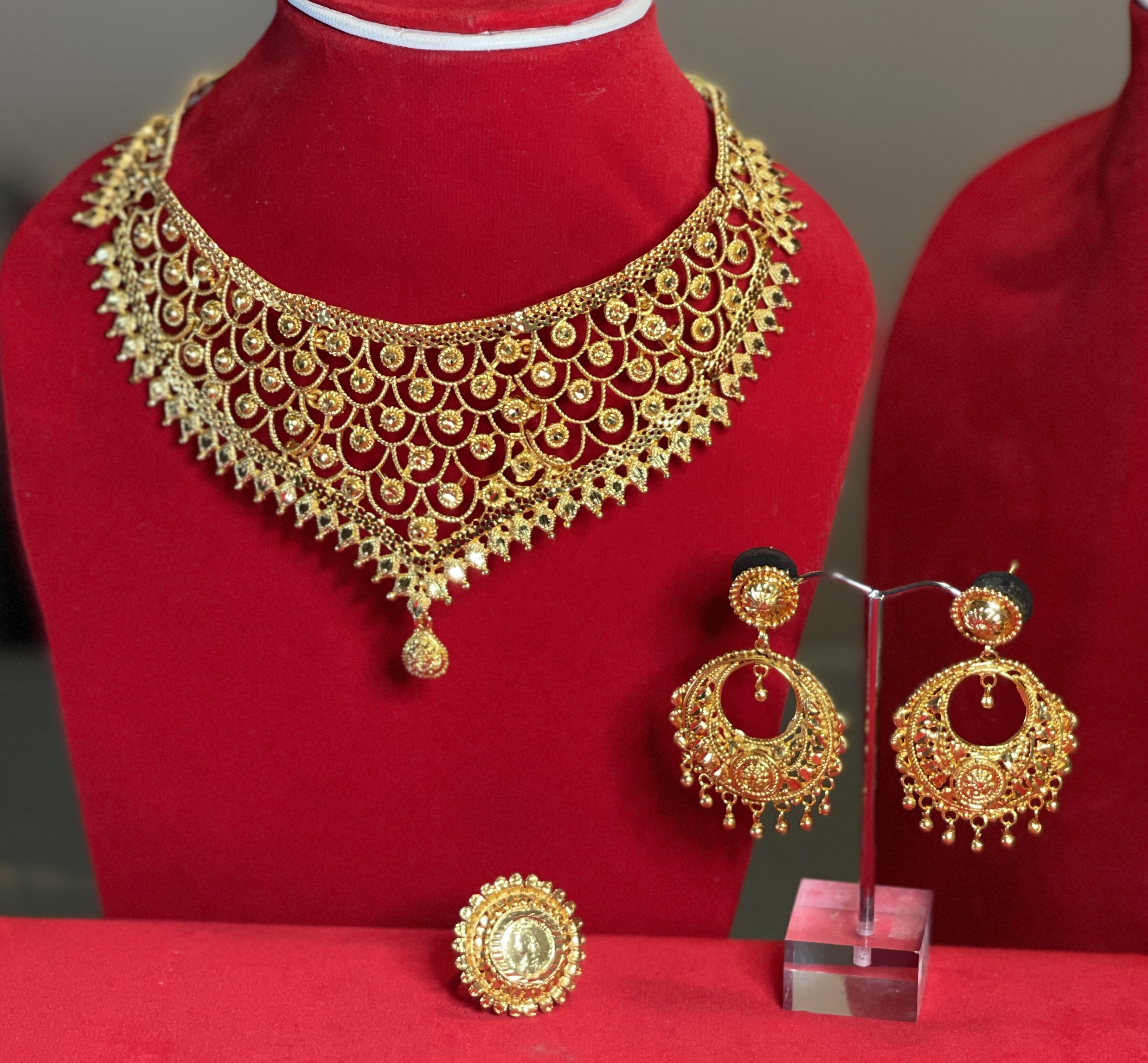 ZALIMA is a Golden Choker made with Panchadhatu, a beauty that lasts. Chokers are in-style in today’s fashion world. It goes great with any traditional or non-traditional wears. Gold is always in fashion!