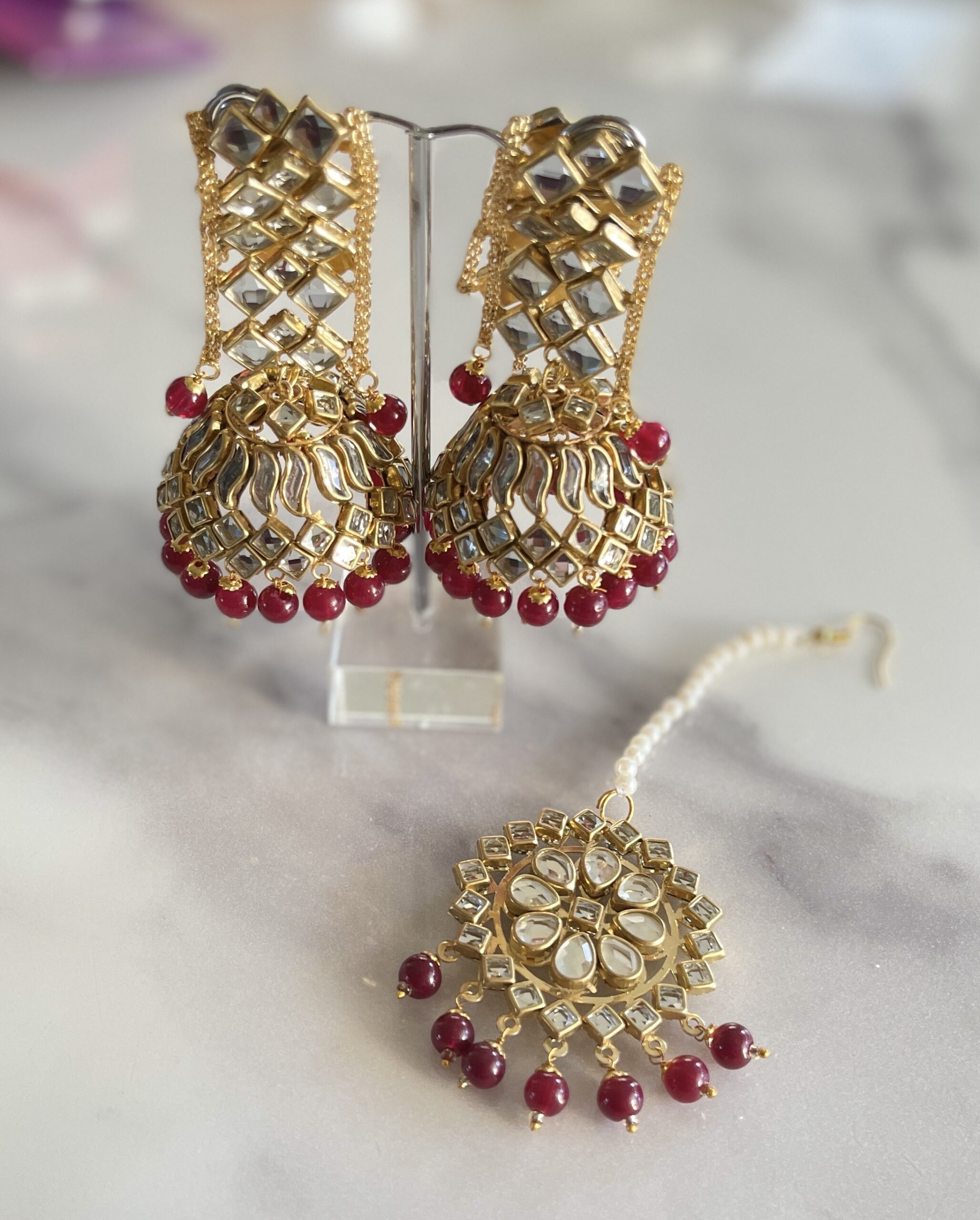 - Color: Maroon | Stone: Kundan & Beads