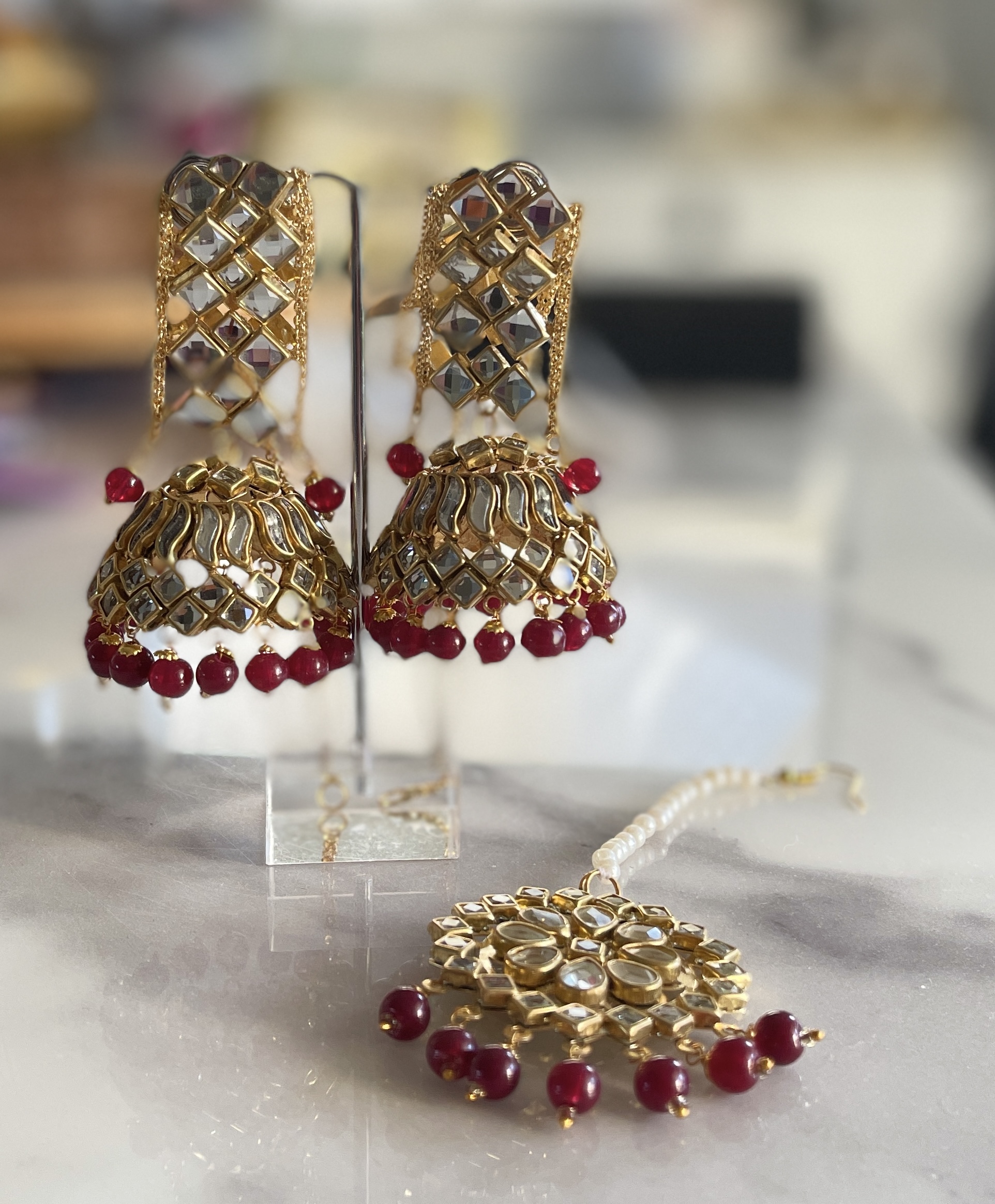 - Package Content: 1 Pair Of Earring. 1 Pcs of Bindi/Tikka
