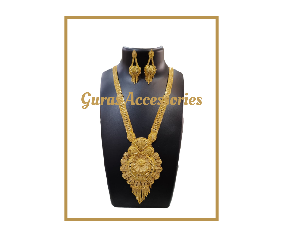 KHUSHI haraam/haar set is made with the best quality material. It is plated with one gram real gold. Packed with both, Quality and beauty in one haar.