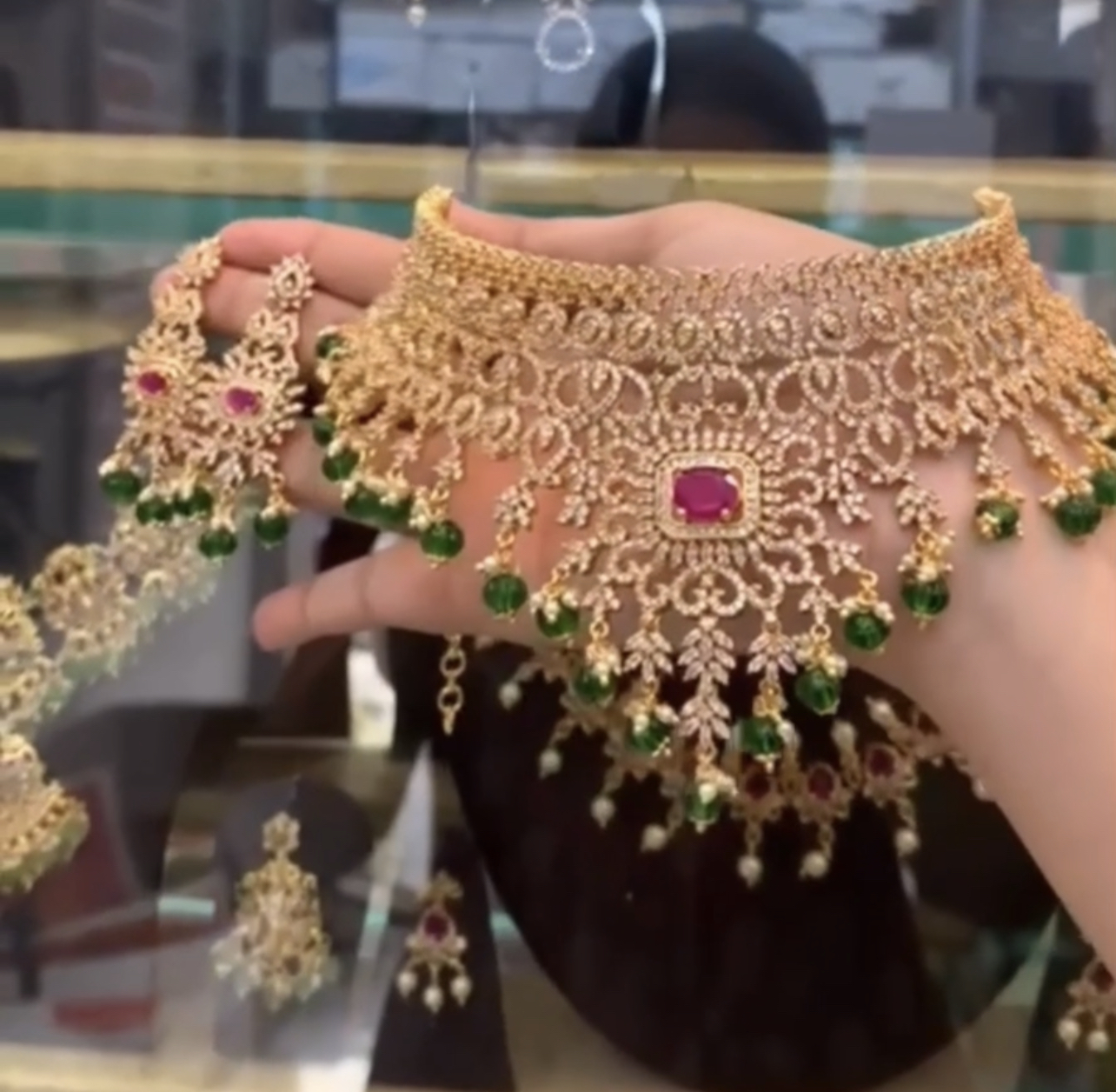 AN EXCEPTIONAL piece of art, this Set is definitely a keeper. The set is packed with high quality American Diamonds and Lab-created Semi-precious Stones. We pride in carrying quality jewelries at GURAS.