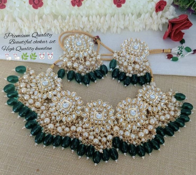 Material: Imitation Pearl, Beads, Kundan, Gold plated over Alloy