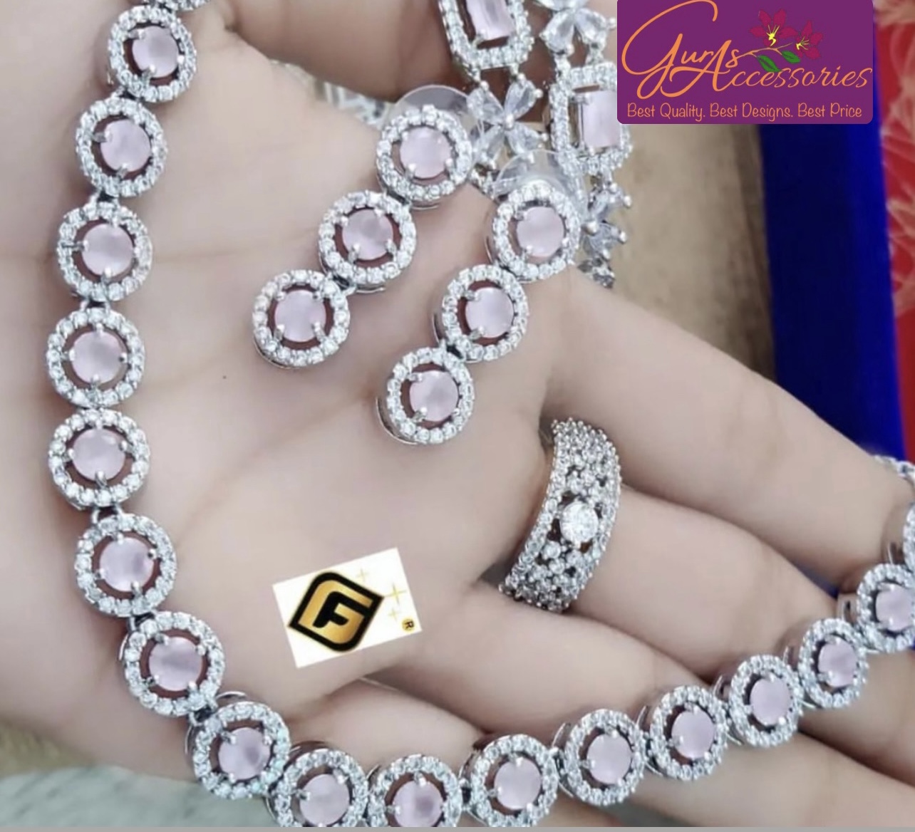 Package contains: 1 pc necklace, 1 pc Ring & 1 pair of matching Earrings