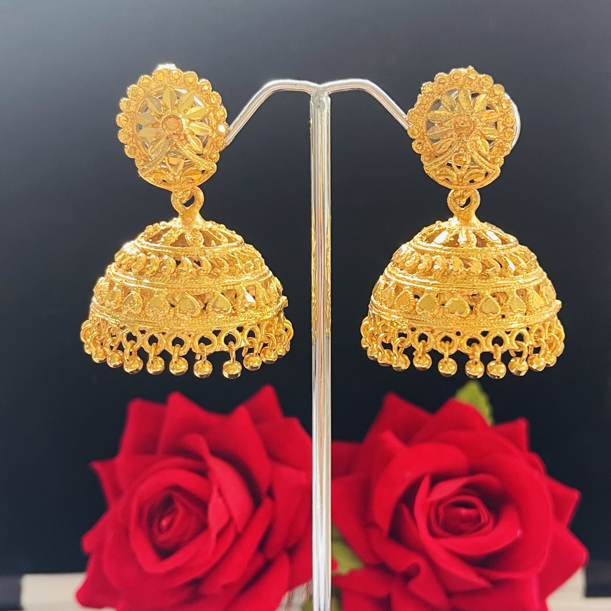 An Earring with exquisite design made with Panchadhatu in order to make the beauty last years. Sleek design that can be worn alone or can be paired with other jewelries. Ideal if paired with traditional Necklaces.