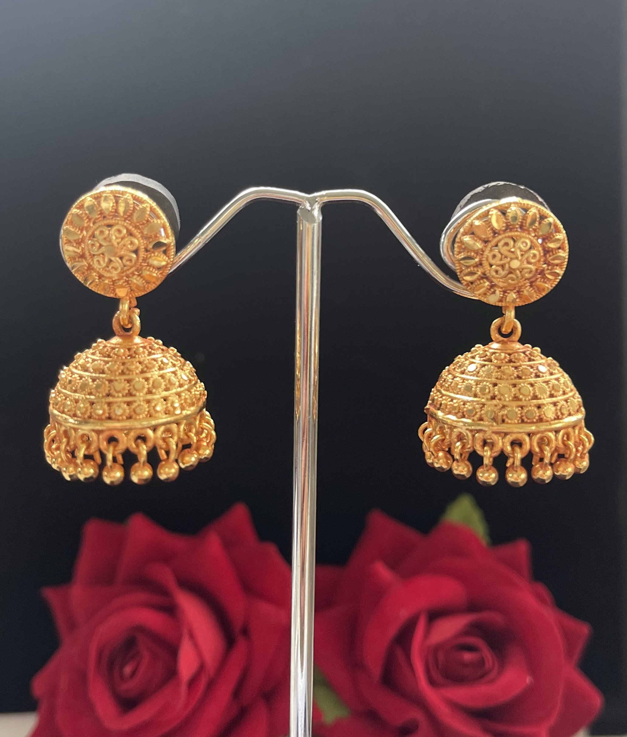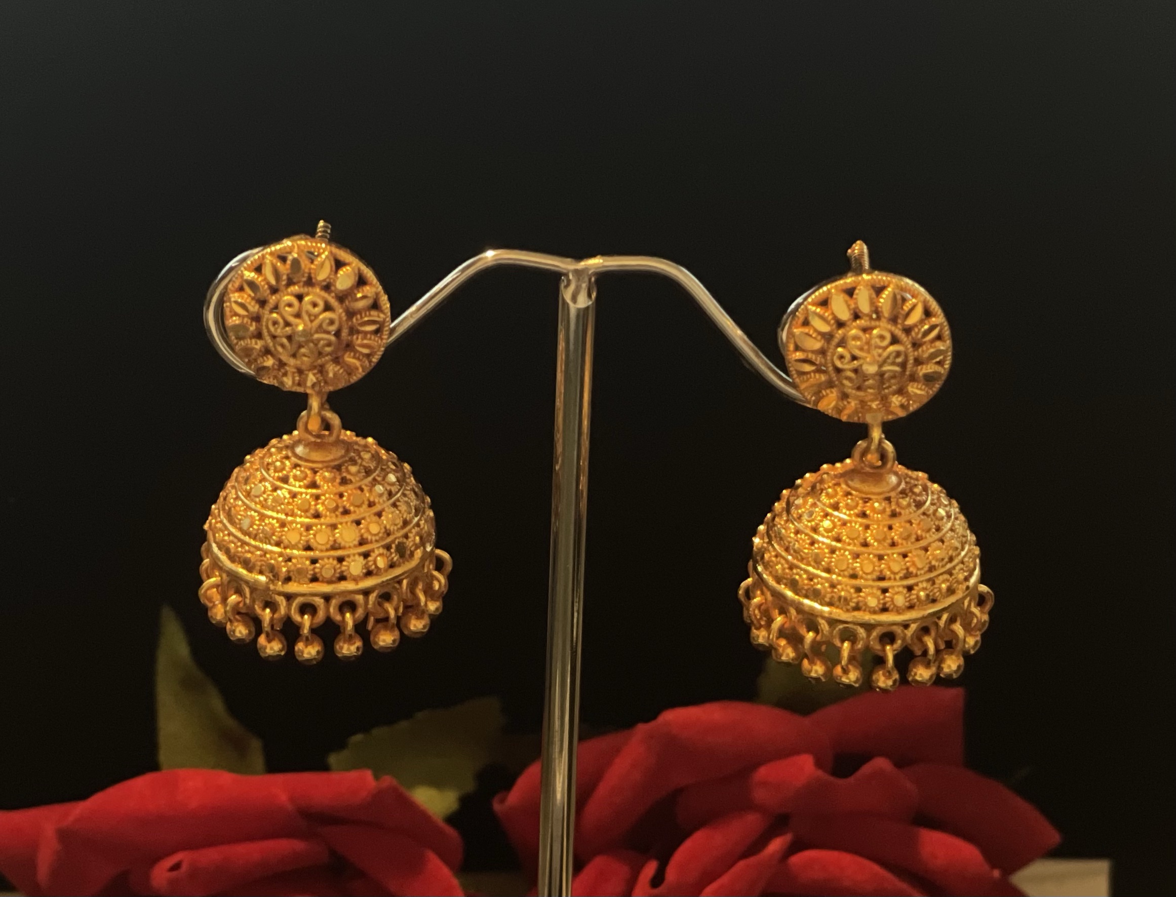 An Earring with exquisite design made with Panchadhatu in order to make the beauty last years. Sleek design that can be worn alone or can be paired with other jewelries. Ideal if paired with traditional Necklaces.