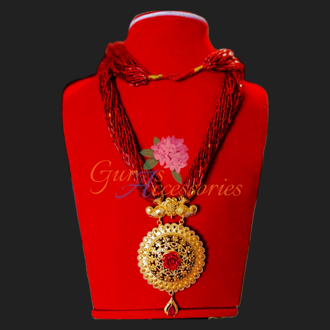 Modern design incorporated on traditional Tilhari to give it extra beauty and elegance. It goes great with any Nepalese traditional attire.